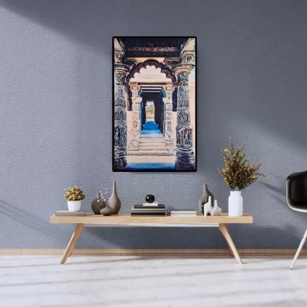 Metal prints provide exceptional colour vibrancy with minimal glare, making the artwork come alive even from a distance. UV-protected, waterproof, and dustproof, this print is designed to retain its brilliance for years to come. The smooth metal surface enhances the depth of the temple’s grand corridor, offering a modern sheen to an ancient marvel.